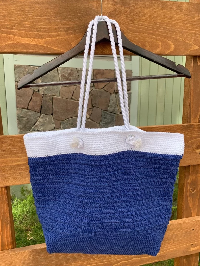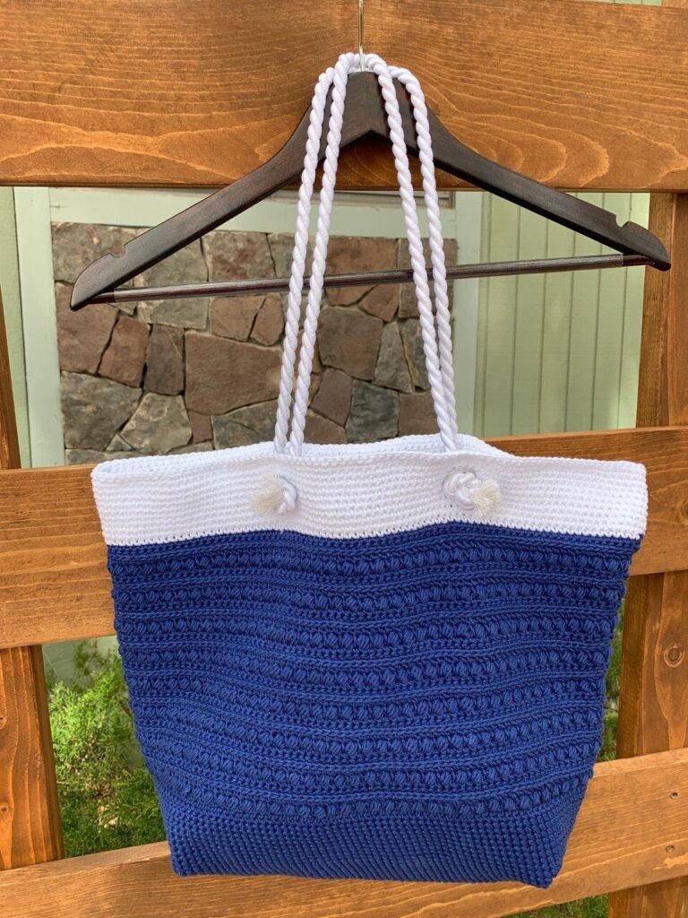 Exquisitely detailed shoulder bag made out of cotton yarn. This bag is perfect to use as your everyday purse, an overnight tote, or a beach bag. The bottom of the bag is stitched to enhance roominess and the rope handles are held in place by grommets for durability. The useable space in this bag measures 16 1/4″ W x 12″ L.
