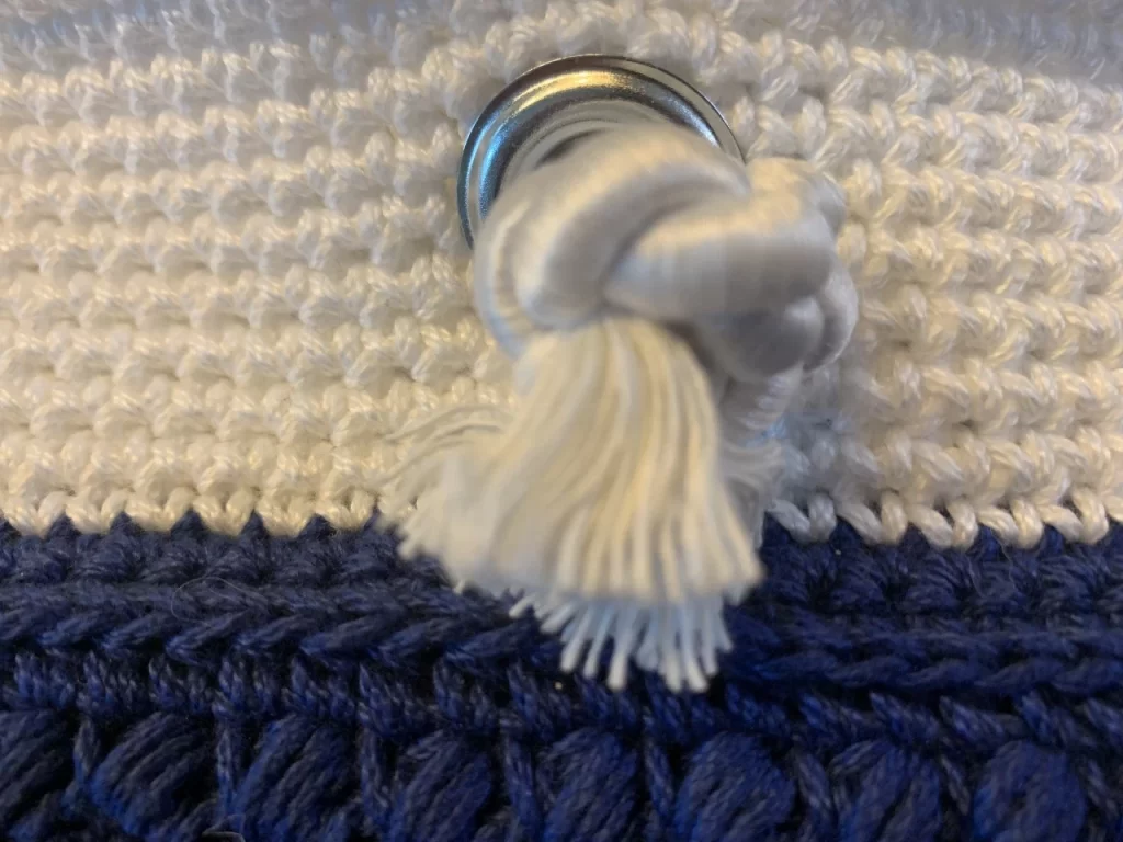 I started crocheting this bag while I was in San Antonio visiting my best friend. When I boarded the flight home, a nice couple was sitting in my row. After finding out that my plan was to crochet the whole way home, this gentleman valiantly offered to hold my yarn and unwind it as I was working. He diligently helped me for the whole flight, and we both learned the importance of a great yarn unraveler! Thanks Clinton and Traci for helping with this bag and for making the flight home memorable!